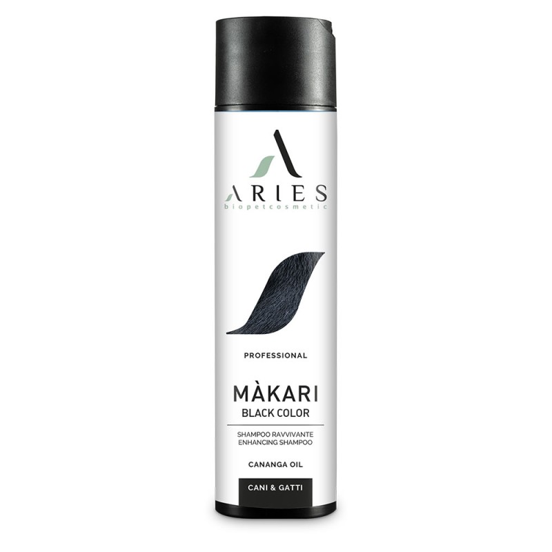 Màkari Color Bio Shampoo Black è studiato per valorizzare ed esaltare la bellezza dei manti neri, prodotto altamente professionale pensato per ridonare ai mantelli neri il loro colore naturale, innovativo poiché riporta il manto al colore originale penetrando in profondità nella struttura pilifera. La sua formulazione Biologica con Camomilla, Lavanda, Rosmarino e Cananga oil, dona splendore al manto Nutre, Idrata, Ristruttura e dà Corpo e Volume per il manto dei Barboni. La Cananga Oil elimina l’effetto Crespo donando forza e luminosità ai mantelli aridi e scoloriti rendendoli più corposi e setosi esaltandone i riflessi naturali. L’Olio di Rosmarino svolge un’azione purificante sulla cute e ristrutturante sulle lunghezze. La Camomilla dalle proprietà lenitive lo rende uno shampoo rigenerante e rilassante. Màkari Bio Color Black Shampoo unisce in un solo prodotto un delicato shampoo detergente Biologico ad un rivoluzionario trattamento Colorante naturale. Ravviva il colore del manto in maniera efficace nelle tonalità del nero.