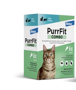 Inoltre, PurrFit™ COMBO previene la moltiplicazione delle pulci bloccando lo sviluppo di uova, larve e pupe, per sei settimane dopo l’applicazione nei gatti.